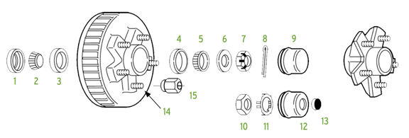 A: The hub will have to be removed and bearings removed for physical identification. Bearings will have specific numbers etched into the side of the bearing center. These numbers are universal; all tapered roller bearing manufacturers use the same numbering system for bearing and race components. We will need to know the inner and outer bearing numbers in the hub. We’ll also need to know the number of wheel studs in the hub and a couple other measurements. Having the hub and a ruler handy when you call will greatly help speed up the process of finding the right hub for your needs.