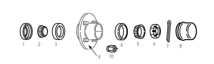 A: The hub will have to be removed and bearings removed for physical identification. Bearings will have specific numbers etched into the side of the bearing center. These numbers are universal; all tapered roller bearing manufacturers use the same numbering system for bearing and race components. We will need to know the inner and outer bearing numbers in the hub. We’ll also need to know the number of wheel studs in the hub and a couple other measurements. Having the hub and a ruler handy when you call will greatly help speed up the process of finding the right hub for your needs.