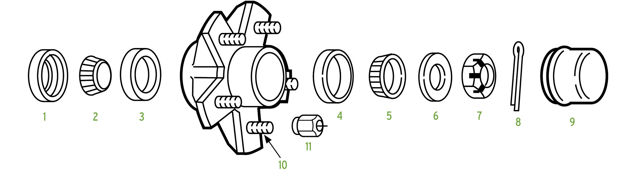 A: The hub will have to be removed and bearings removed for physical identification. Bearings will have specific numbers etched into the side of the bearing center. These numbers are universal; all tapered roller bearing manufacturers use the same numbering system for bearing and race components. We will need to know the inner and outer bearing numbers in the hub. We’ll also need to know the number of wheel studs in the hub and a couple other measurements. Having the hub and a ruler handy when you call will greatly help speed up the process of finding the right hub for your needs.